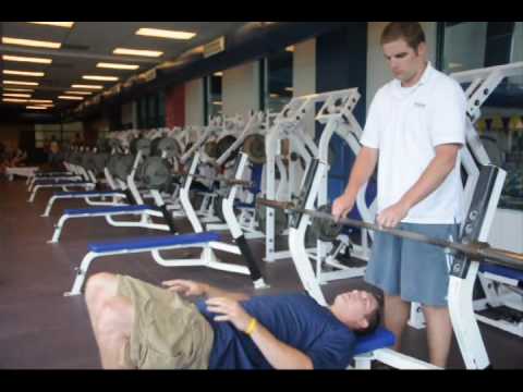 the bar on the bench press station. Ensure the bench is